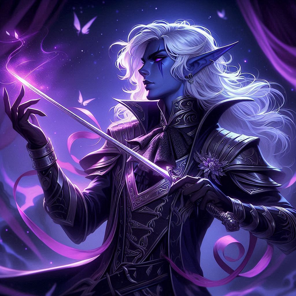 A warrior-mage who blends the eldritch power of his Archfey patron with the ancient art of Bladesinging. Theros dances through combat with fey grace, teleporting across the battlefield and striking with his pact blade before vanishing into shadow.